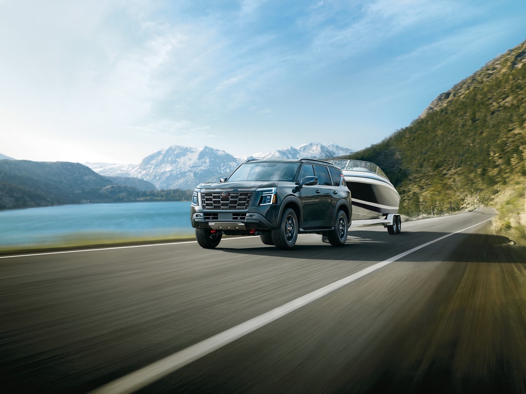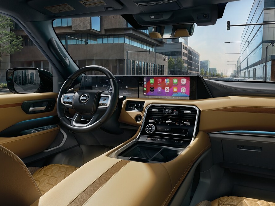 Step inside the 2026 Nissan Armada to discover a spacious cabin designed to accommodate seven or eight passengers depending on configuration. The interior features premium materials throughout, including available quilted leather seating surfaces, genuine wood trim accents, and metal-look console inserts. Second-row seating options include captain's chairs with a center console or a 40/20/40 split-folding bench seat, while the power-folding third row makes cargo access easy. Advanced comfort features include climate-controlled heated and ventilated front seats with available massage functionality, heated second-row seats, and a dual-zone automatic climate control system with rear HVAC controls.