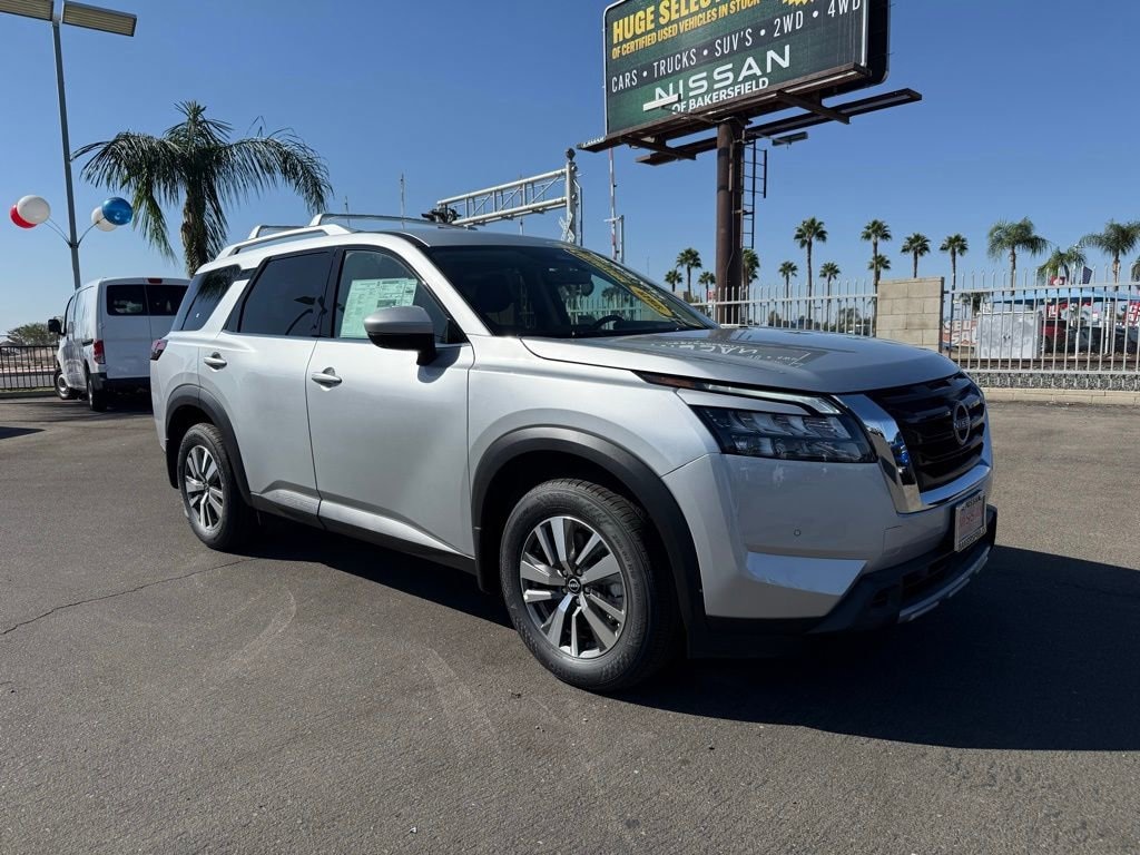SL Brilliant Silver Metallic 3.5L V6 DOHC 3rd row seats: bench, 4-Wheel Disc Brakes, 6 Speakers, ABS brakes, Air Conditioning, Alloy wheels, AM/FM radio: SiriusXM, Auto High-beam Headlights, Auto-dimming Rear-View mirror, Automatic temperature control, Brake assist, Bumpers: body-color, Delay-off headlights, Driver door bin, Driver vanity mirror, Dual front impact airbags, Dual front side impact airbags, Electronic Stability Control, Emergency communication system, Exterior Parking Camera Rear, Four wheel independent suspension, Front anti-roll bar, Front Bucket Seats, Front Center Armrest, Front dual zone A/C, Front reading lights, Fully automatic headlights, Garage door transmitter: HomeLink, Heated door mirrors, Heated Front Bucket Seats, Heated front seats, Heated steering wheel, Illuminated entry, Knee airbag, Leather steering wheel, Leather-Appointed Seating Surfaces, Low tire pressure warning, Navigation system: NissanConnect with Navigation and Services, NissanConnect featuring Apple CarPlay and Android Auto, NissanConnect w/Navigation & Services, Occupant sensing airbag, Outside temperature display, Overhead airbag, Overhead console, Panic alarm, Passenger door bin, Passenger vanity mirror, Power door mirrors, Power driver seat, Power Liftgate, Power passenger seat, Power steering, Power windows, Radio data system, Radio: AM/FM Audio System, Rear air conditioning, Rear anti-roll bar, Rear reading lights, Rear seat center armrest, Rear side impact airbag, Rear window defroster, Rear window wiper, Reclining 3rd row seat, Remote keyless entry, Security system, Speed control, Speed-sensing steering, Split folding rear seat, Spoiler, Steering wheel mounted audio controls, Tachometer, Telescoping steering wheel, Tilt steering wheel, Traction control, Trip computer, Turn signal indicator mirrors, Variably intermittent wipers, Wheels: 18 x 8J Machined Alloy. 20/27 City/Highway MPG Price includes: $5000 - Nissan Customer Cash. Exp. 11/03/2025