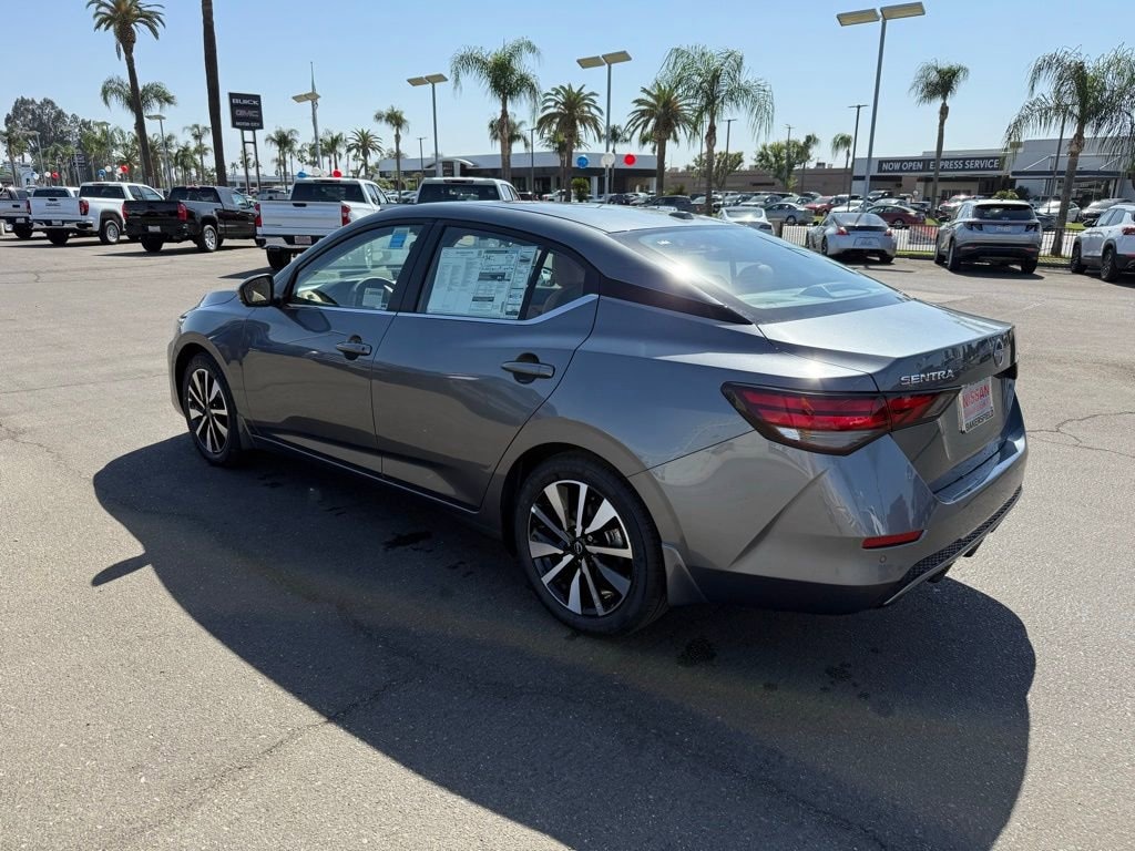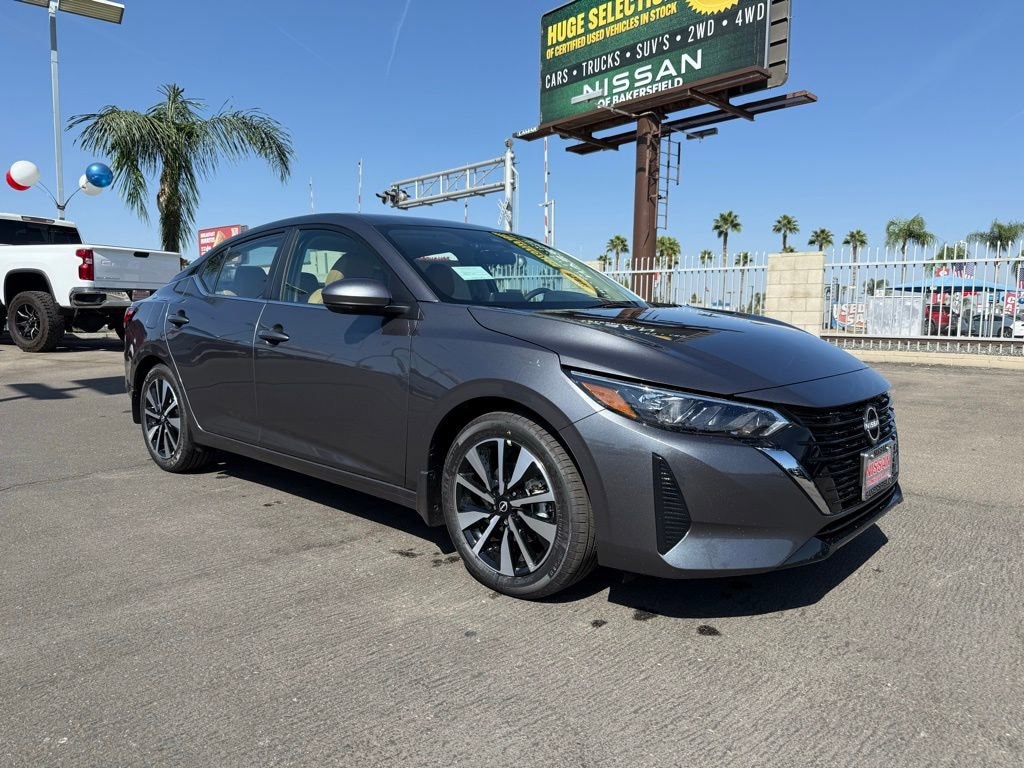 SV Gun Metallic 2.0L I4 DOHC 16 Alloy Wheels, 4-Wheel Disc Brakes, 8 Speakers, ABS brakes, Air Conditioning, Alloy wheels, AM/FM radio: SiriusXM, Auto High-beam Headlights, Blind Spot Warning, Brake assist, Bumpers: body-color, Delay-off headlights, Driver door bin, Driver vanity mirror, Dual front impact airbags, Dual front side impact airbags, Electronic Stability Control, Four wheel independent suspension, Front anti-roll bar, Front Bucket Seats, Front Center Armrest, Front reading lights, Fully automatic headlights, Illuminated entry, Knee airbag, Low tire pressure warning, NissanConnect featuring Apple CarPlay and Android Auto, Occupant sensing airbag, Outside temperature display, Overhead airbag, Overhead console, Panic alarm, Passenger door bin, Passenger vanity mirror, Power door mirrors, Power steering, Power windows, Radio data system, Radio: AM/FM w/RDS/MP3/Aux-In, Rear anti-roll bar, Rear Parking Sensors, Rear side impact airbag, Rear window defroster, Remote keyless entry, Security system, Speed control, Speed-sensing steering, Split folding rear seat, Steering wheel mounted audio controls, Tachometer, Telescoping steering wheel, Tilt steering wheel, Traction control, Trip computer, Upgraded Cloth Seat Trim, Variably intermittent wipers. 30/40 City/Highway MPG Price includes: $500 - Nissan MY25 Sentra Bonus Cash. Exp. 11/03/2025 $750 - Nissan Los Angeles - MY25 Sentra (Excl S) Customer Cash - October. Exp. 11/03/2025