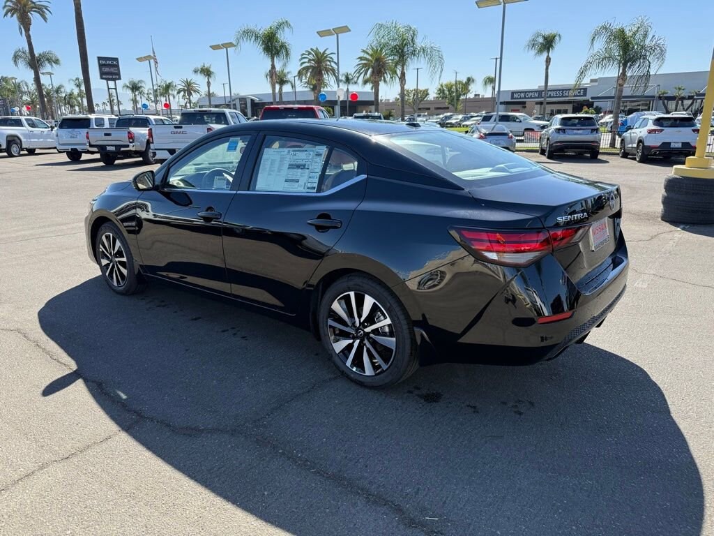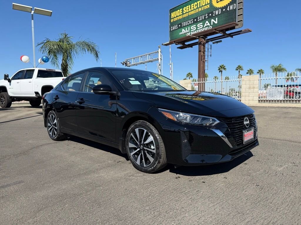SV Super Black 2.0L I4 DOHC 16 Alloy Wheels, 4-Wheel Disc Brakes, 8 Speakers, ABS brakes, Air Conditioning, Alloy wheels, AM/FM radio: SiriusXM, Auto High-beam Headlights, Blind Spot Warning, Brake assist, Bumpers: body-color, Delay-off headlights, Driver door bin, Driver vanity mirror, Dual front impact airbags, Dual front side impact airbags, Electronic Stability Control, Four wheel independent suspension, Front anti-roll bar, Front Bucket Seats, Front Center Armrest, Front reading lights, Fully automatic headlights, Illuminated entry, Knee airbag, Low tire pressure warning, NissanConnect featuring Apple CarPlay and Android Auto, Occupant sensing airbag, Outside temperature display, Overhead airbag, Overhead console, Panic alarm, Passenger door bin, Passenger vanity mirror, Power door mirrors, Power steering, Power windows, Radio data system, Radio: AM/FM w/RDS/MP3/Aux-In, Rear anti-roll bar, Rear Parking Sensors, Rear side impact airbag, Rear window defroster, Remote keyless entry, Security system, Speed control, Speed-sensing steering, Split folding rear seat, Steering wheel mounted audio controls, Tachometer, Telescoping steering wheel, Tilt steering wheel, Traction control, Trip computer, Upgraded Cloth Seat Trim, Variably intermittent wipers. 30/40 City/Highway MPG Price includes: $500 - Nissan MY25 Sentra Bonus Cash. Exp. 11/03/2025 $750 - Nissan Los Angeles - MY25 Sentra (Excl S) Customer Cash - October. Exp. 11/03/2025
