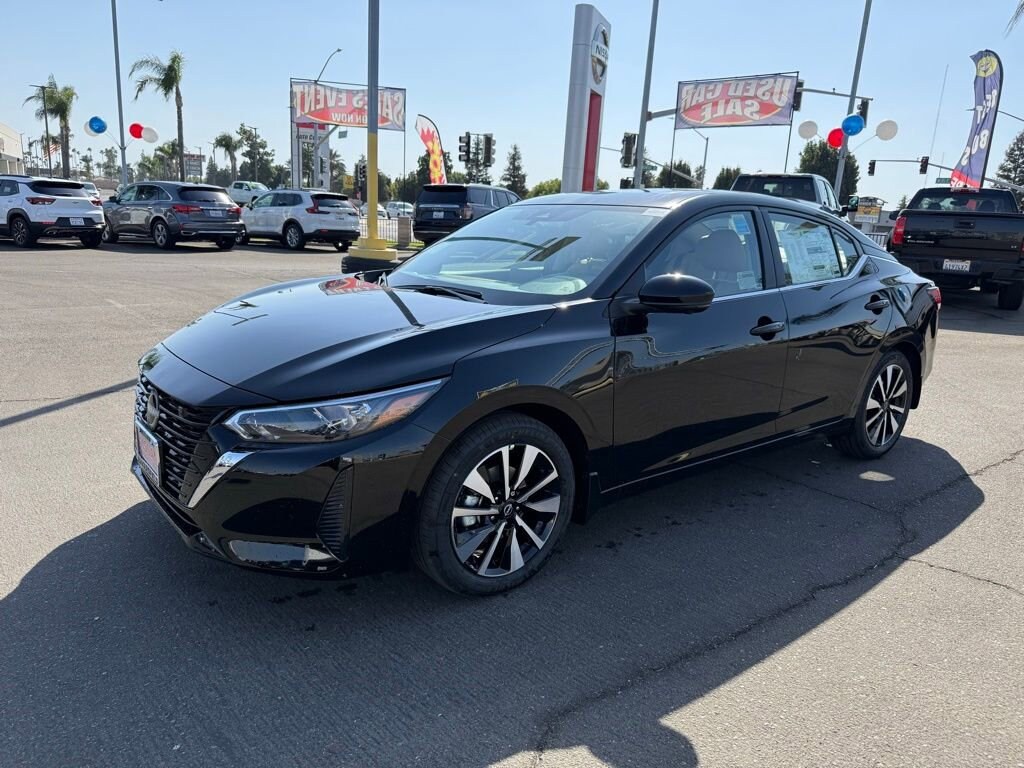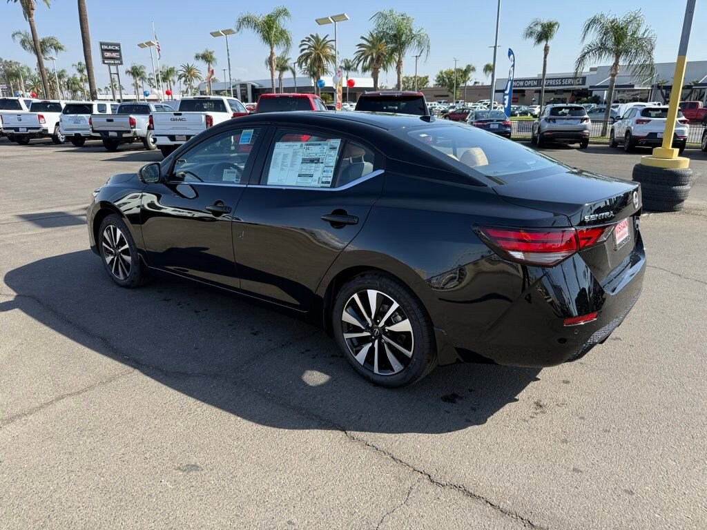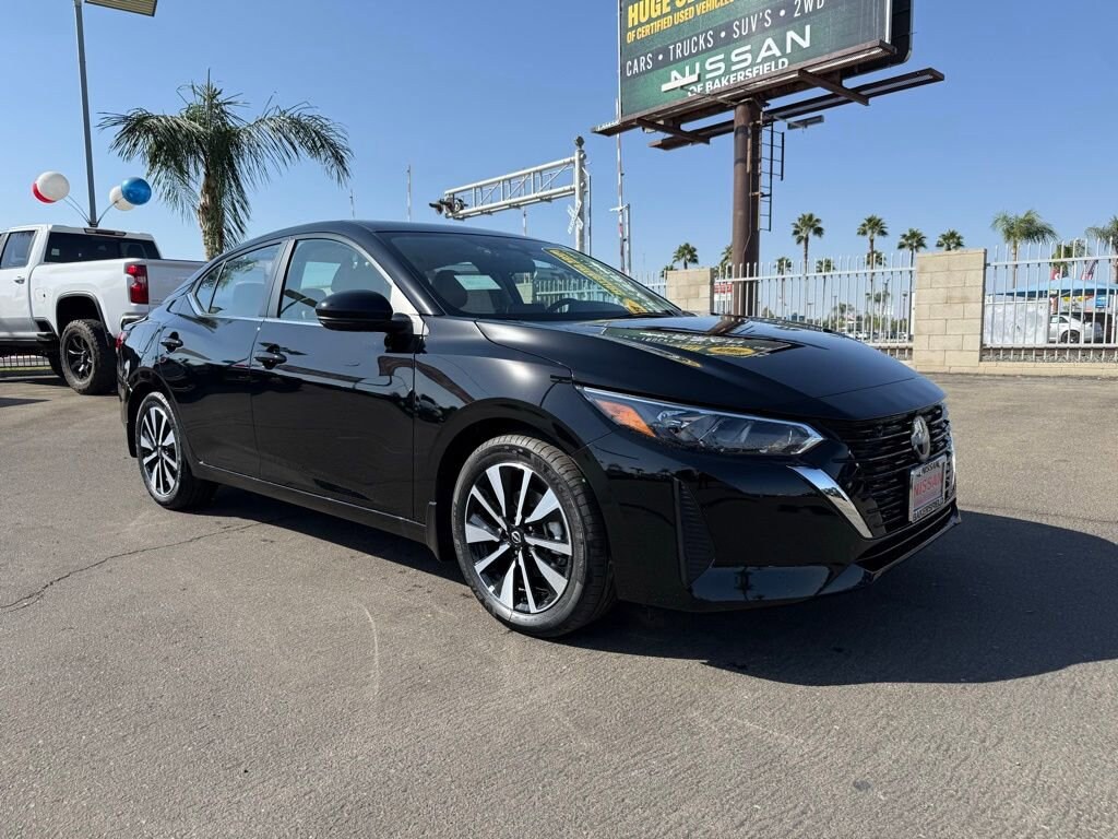 SV Super Black 2.0L I4 DOHC 16 Alloy Wheels, 4-Wheel Disc Brakes, 8 Speakers, ABS brakes, Air Conditioning, Alloy wheels, AM/FM radio: SiriusXM, Auto High-beam Headlights, Blind Spot Warning, Brake assist, Bumpers: body-color, Delay-off headlights, Driver door bin, Driver vanity mirror, Dual front impact airbags, Dual front side impact airbags, Electronic Stability Control, Four wheel independent suspension, Front anti-roll bar, Front Bucket Seats, Front Center Armrest, Front reading lights, Fully automatic headlights, Illuminated entry, Knee airbag, Low tire pressure warning, NissanConnect featuring Apple CarPlay and Android Auto, Occupant sensing airbag, Outside temperature display, Overhead airbag, Overhead console, Panic alarm, Passenger door bin, Passenger vanity mirror, Power door mirrors, Power steering, Power windows, Radio data system, Radio: AM/FM w/RDS/MP3/Aux-In, Rear anti-roll bar, Rear Parking Sensors, Rear side impact airbag, Rear window defroster, Remote keyless entry, Security system, Speed control, Speed-sensing steering, Split folding rear seat, Steering wheel mounted audio controls, Tachometer, Telescoping steering wheel, Tilt steering wheel, Traction control, Trip computer, Upgraded Cloth Seat Trim, Variably intermittent wipers. 30/40 City/Highway MPG Price includes: $500 - Nissan MY25 Sentra Bonus Cash. Exp. 11/03/2025 $750 - Nissan Los Angeles - MY25 Sentra (Excl S) Customer Cash - October. Exp. 11/03/2025