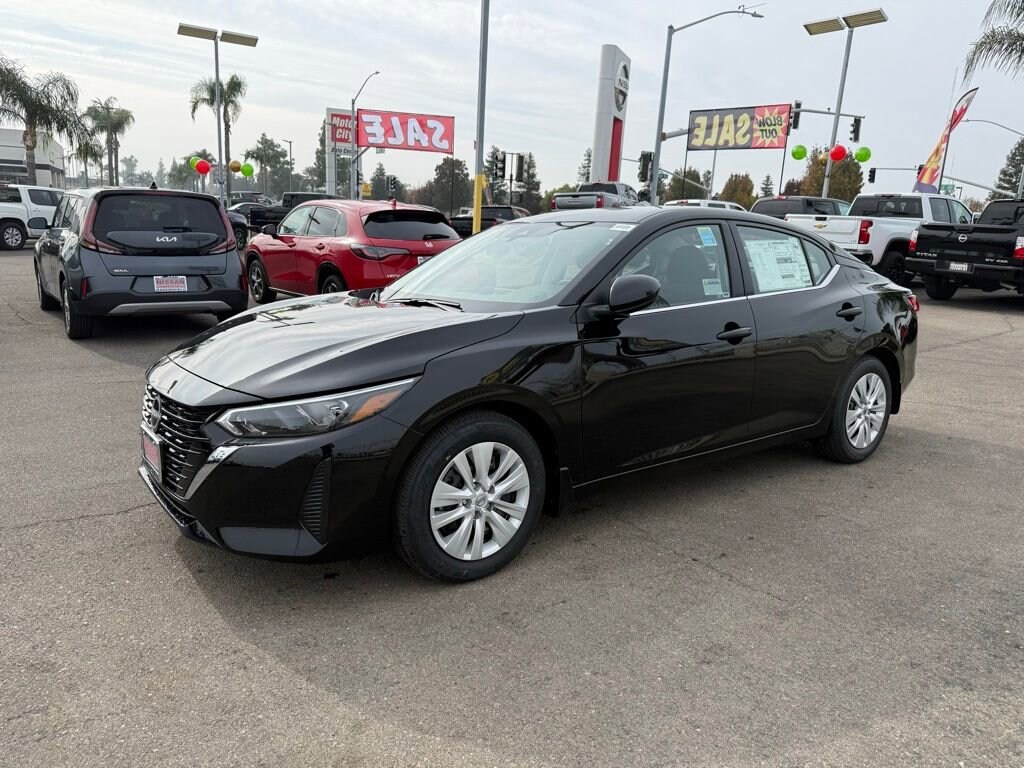 S Super Black 2.0L I4 DOHC 4 Speakers, ABS brakes, Air Conditioning, AM/FM radio, Auto High-beam Headlights, Blind Spot Warning, Body Colored Splash Guards (4-Piece), Brake assist, Bumpers: body-color, Carpeted Floor Mats with Trunk Mat, Cloth Seat Trim, Delay-off headlights, Driver door bin, Driver vanity mirror, Dual front impact airbags, Dual front side impact airbags, Electronic Stability Control, Four wheel independent suspension, Front anti-roll bar, Front Bucket Seats, Front Center Armrest, Front reading lights, Fully automatic headlights, Illuminated entry, Knee airbag, Low tire pressure warning, NissanConnect featuring Apple CarPlay and Android Auto, Occupant sensing airbag, Outside temperature display, Overhead airbag, Overhead console, Panic alarm, Passenger door bin, Passenger vanity mirror, Power door mirrors, Power steering, Power windows, Radio data system, Radio: AM/FM with RDS/MP3/Aux-in, Rear anti-roll bar, Rear Parking Sensors, Rear side impact airbag, Rear window defroster, Remote keyless entry, Speed control, Speed-sensing steering, Split folding rear seat, Steering wheel mounted audio controls, Tachometer, Telescoping steering wheel, Tilt steering wheel, Traction control, Trip computer, Variably intermittent wipers, Wheels: 16 Steel with Full Covers. 30/40 City/Highway MPG Price includes: $500 - Nissan MY25 Sentra Bonus Cash. Exp. 01/05/2026
