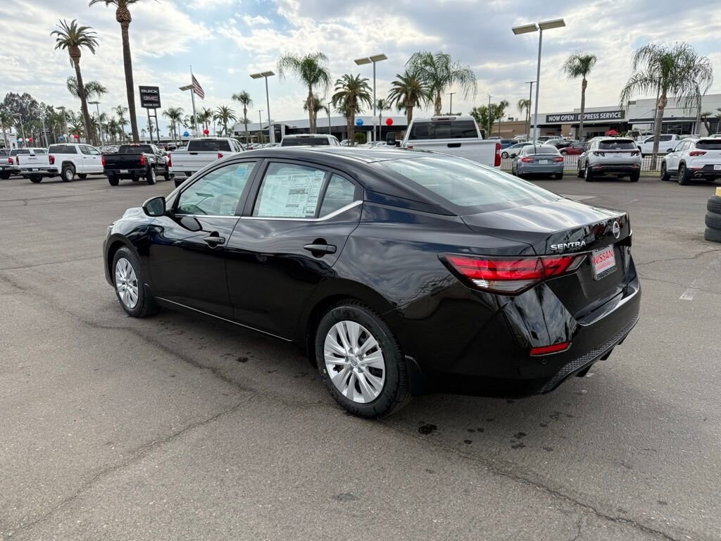 S Super Black 2.0L I4 DOHC 16 Steel Wheels w/Full Wheel Covers, 4 Speakers, ABS brakes, Air Conditioning, AM/FM radio, Auto High-beam Headlights, Blind Spot Warning, Brake assist, Bumpers: body-color, Cloth Seat Trim, Delay-off headlights, Driver door bin, Driver vanity mirror, Dual front impact airbags, Dual front side impact airbags, Electronic Stability Control, Four wheel independent suspension, Front anti-roll bar, Front Bucket Seats, Front Center Armrest, Front reading lights, Fully automatic headlights, Illuminated entry, Knee airbag, Low tire pressure warning, NissanConnect featuring Apple CarPlay and Android Auto, Occupant sensing airbag, Outside temperature display, Overhead airbag, Overhead console, Panic alarm, Passenger door bin, Passenger vanity mirror, Power door mirrors, Power steering, Power windows, Radio data system, Radio: AM/FM w/RDS/MP3/Aux-In, Rear anti-roll bar, Rear Parking Sensors, Rear side impact airbag, Rear window defroster, Remote keyless entry, Speed control, Speed-sensing steering, Split folding rear seat, Steering wheel mounted audio controls, Tachometer, Telescoping steering wheel, Tilt steering wheel, Traction control, Trip computer, Variably intermittent wipers. 30/40 City/Highway MPG Price includes: $500 - Nissan MY25 Sentra Bonus Cash. Exp. 11/03/2025