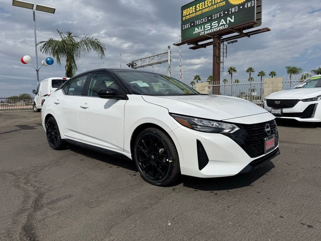 SR Aspen White Tricoat/Super Black 2.0L I4 DOHC 18 Alloy Wheels, 18 Black Alloy Wheels, 4-Wheel Disc Brakes, 8 Speakers, ABS brakes, Air Conditioning, Alloy wheels, AM/FM radio: SiriusXM, Auto High-beam Headlights, Automatic temperature control, Black Exterior Badging, Black Painted V-Motion Grille, Blind Spot Warning, Brake assist, Bumpers: body-color, Delay-off headlights, Driver door bin, Driver vanity mirror, Dual front impact airbags, Dual front side impact airbags, Electronic Stability Control, Four wheel independent suspension, Front anti-roll bar, Front Bucket Seats, Front Center Armrest, Front dual zone A/C, Front reading lights, Fully automatic headlights, Heated door mirrors, Heated Front Bucket Seats, Heated front seats, Illuminated entry, Knee airbag, Leather Shift Knob, Low tire pressure warning, Midnight Edition, NissanConnect featuring Apple CarPlay and Android Auto, Occupant sensing airbag, Outside temperature display, Overhead airbag, Overhead console, Panic alarm, Passenger door bin, Passenger vanity mirror, Power door mirrors, Power steering, Power windows, Radio data system, Radio: AM/FM w/RDS/MP3/Aux-In, Rear anti-roll bar, Rear Parking Sensors, Rear seat center armrest, Rear side impact airbag, Rear Spoiler, Rear window defroster, Remote keyless entry, Security system, Side Sills, Speed control, Speed-sensing steering, Split folding rear seat, Spoiler, Sport Cloth Seat Trim, Steering wheel mounted audio controls, Tachometer, Telescoping steering wheel, Tilt steering wheel, Traction control, Trip computer, Turn signal indicator mirrors, Variably intermittent wipers. 30/38 City/Highway MPG Price includes: $500 - Nissan MY25 Sentra Bonus Cash. Exp. 09/30/2025 $500 - Nissan WR NCN-SCP-HNL MY25 Sentra (Excl S) Customer Cash - September. Exp. 09/30/2025