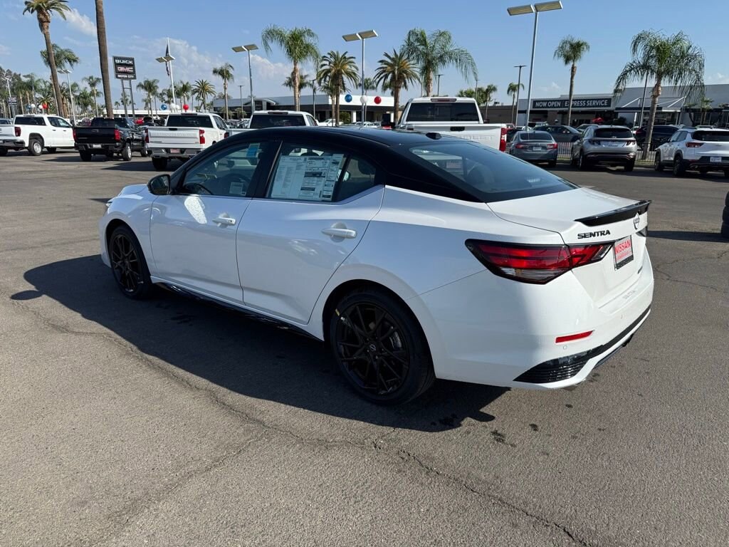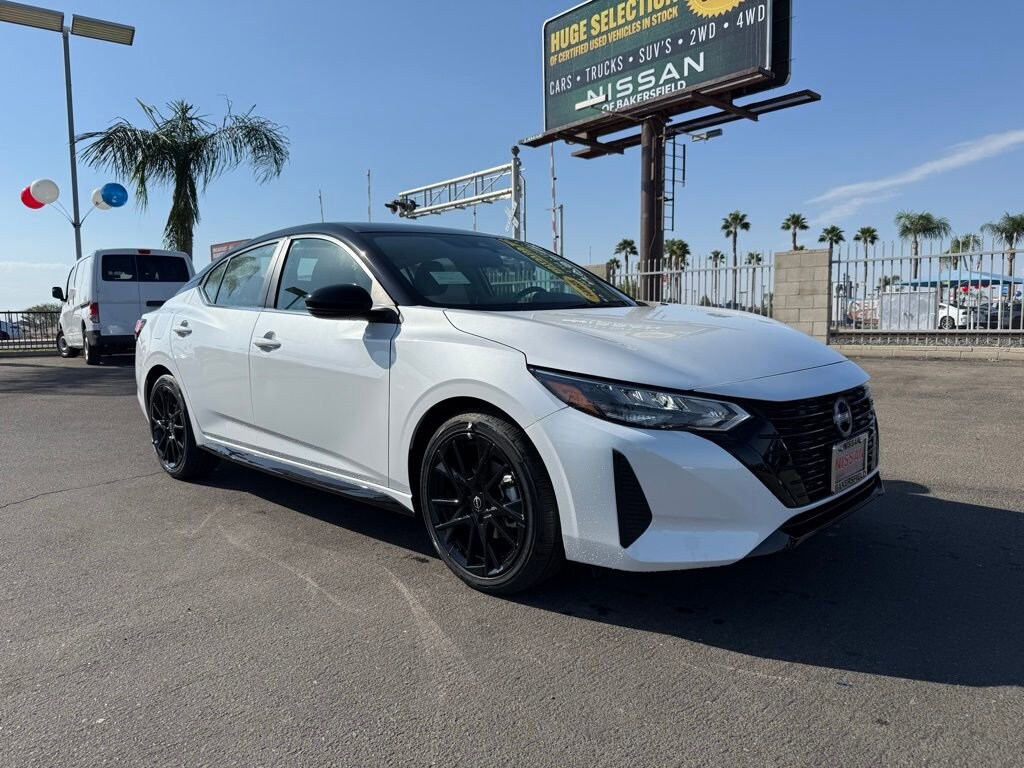 SR Aspen White Tricoat/Super Black 2.0L I4 DOHC 18 Alloy Wheels, 18 Black Alloy Wheels, 4-Wheel Disc Brakes, 8 Speakers, ABS brakes, Air Conditioning, Alloy wheels, AM/FM radio: SiriusXM, Auto High-beam Headlights, Automatic temperature control, Black Exterior Badging, Black Painted V-Motion Grille, Blind Spot Warning, Brake assist, Bumpers: body-color, Delay-off headlights, Driver door bin, Driver vanity mirror, Dual front impact airbags, Dual front side impact airbags, Electronic Stability Control, Four wheel independent suspension, Front anti-roll bar, Front Bucket Seats, Front Center Armrest, Front dual zone A/C, Front reading lights, Fully automatic headlights, Heated door mirrors, Heated Front Bucket Seats, Heated front seats, Illuminated entry, Knee airbag, Leather Shift Knob, Low tire pressure warning, Midnight Edition, NissanConnect featuring Apple CarPlay and Android Auto, Occupant sensing airbag, Outside temperature display, Overhead airbag, Overhead console, Panic alarm, Passenger door bin, Passenger vanity mirror, Power door mirrors, Power steering, Power windows, Radio data system, Radio: AM/FM w/RDS/MP3/Aux-In, Rear anti-roll bar, Rear Parking Sensors, Rear seat center armrest, Rear side impact airbag, Rear Spoiler, Rear window defroster, Remote keyless entry, Security system, Side Sills, Speed control, Speed-sensing steering, Split folding rear seat, Spoiler, Sport Cloth Seat Trim, Steering wheel mounted audio controls, Tachometer, Telescoping steering wheel, Tilt steering wheel, Traction control, Trip computer, Turn signal indicator mirrors, Variably intermittent wipers. 30/38 City/Highway MPG Price includes: $500 - Nissan MY25 Sentra Bonus Cash. Exp. 11/03/2025 $750 - Nissan Los Angeles - MY25 Sentra (Excl S) Customer Cash - October. Exp. 11/03/2025