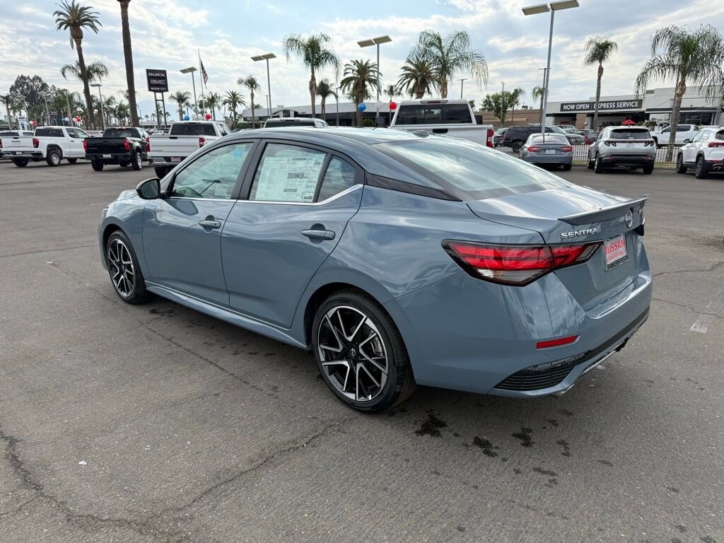 SR Gray Metallic 2.0L I4 DOHC 18 Alloy Wheels, 4-Wheel Disc Brakes, 8 Speakers, ABS brakes, Air Conditioning, Alloy wheels, AM/FM radio: SiriusXM, Auto High-beam Headlights, Automatic temperature control, Blind Spot Warning, Brake assist, Bumpers: body-color, Delay-off headlights, Driver door bin, Driver vanity mirror, Dual front impact airbags, Dual front side impact airbags, Electronic Stability Control, Four wheel independent suspension, Front anti-roll bar, Front Bucket Seats, Front Center Armrest, Front dual zone A/C, Front reading lights, Fully automatic headlights, Heated door mirrors, Heated Front Bucket Seats, Heated front seats, Illuminated entry, Knee airbag, Leather Shift Knob, Low tire pressure warning, NissanConnect featuring Apple CarPlay and Android Auto, Occupant sensing airbag, Outside temperature display, Overhead airbag, Overhead console, Panic alarm, Passenger door bin, Passenger vanity mirror, Power door mirrors, Power steering, Power windows, Radio data system, Radio: AM/FM w/RDS/MP3/Aux-In, Rear anti-roll bar, Rear Parking Sensors, Rear seat center armrest, Rear side impact airbag, Rear window defroster, Remote keyless entry, Security system, Speed control, Speed-sensing steering, Split folding rear seat, Spoiler, Sport Cloth Seat Trim, Steering wheel mounted audio controls, Tachometer, Telescoping steering wheel, Tilt steering wheel, Traction control, Trip computer, Turn signal indicator mirrors, Variably intermittent wipers. 30/38 City/Highway MPG Price includes: $500 - Nissan MY25 Sentra Bonus Cash. Exp. 11/03/2025 $750 - Nissan Los Angeles - MY25 Sentra (Excl S) Customer Cash - October. Exp. 11/03/2025