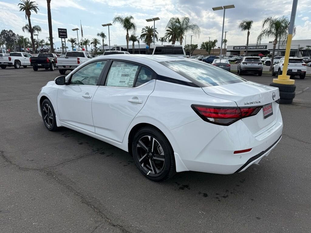 SV Fresh Powder 2.0L I4 DOHC 16 Alloy Wheels, 4-Wheel Disc Brakes, 8 Speakers, ABS brakes, Air Conditioning, Alloy wheels, AM/FM radio: SiriusXM, Auto High-beam Headlights, Blind Spot Warning, Brake assist, Bumpers: body-color, Delay-off headlights, Driver door bin, Driver vanity mirror, Dual front impact airbags, Dual front side impact airbags, Electronic Stability Control, Four wheel independent suspension, Front anti-roll bar, Front Bucket Seats, Front Center Armrest, Front reading lights, Fully automatic headlights, Illuminated entry, Knee airbag, Low tire pressure warning, NissanConnect featuring Apple CarPlay and Android Auto, Occupant sensing airbag, Outside temperature display, Overhead airbag, Overhead console, Panic alarm, Passenger door bin, Passenger vanity mirror, Power door mirrors, Power steering, Power windows, Radio data system, Radio: AM/FM w/RDS/MP3/Aux-In, Rear anti-roll bar, Rear Parking Sensors, Rear side impact airbag, Rear window defroster, Remote keyless entry, Security system, Speed control, Speed-sensing steering, Split folding rear seat, Steering wheel mounted audio controls, Tachometer, Telescoping steering wheel, Tilt steering wheel, Traction control, Trip computer, Upgraded Cloth Seat Trim, Variably intermittent wipers. 30/40 City/Highway MPG Price includes: $500 - Nissan MY25 Sentra Bonus Cash. Exp. 11/03/2025 $750 - Nissan Los Angeles - MY25 Sentra (Excl S) Customer Cash - October. Exp. 11/03/2025